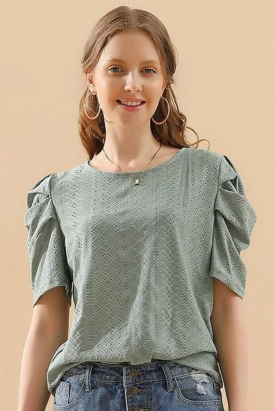 A versatile addition to your wardrobe, the Punching Lace Pleated Puff Sleeve T-Shirts works across multiple occasions.